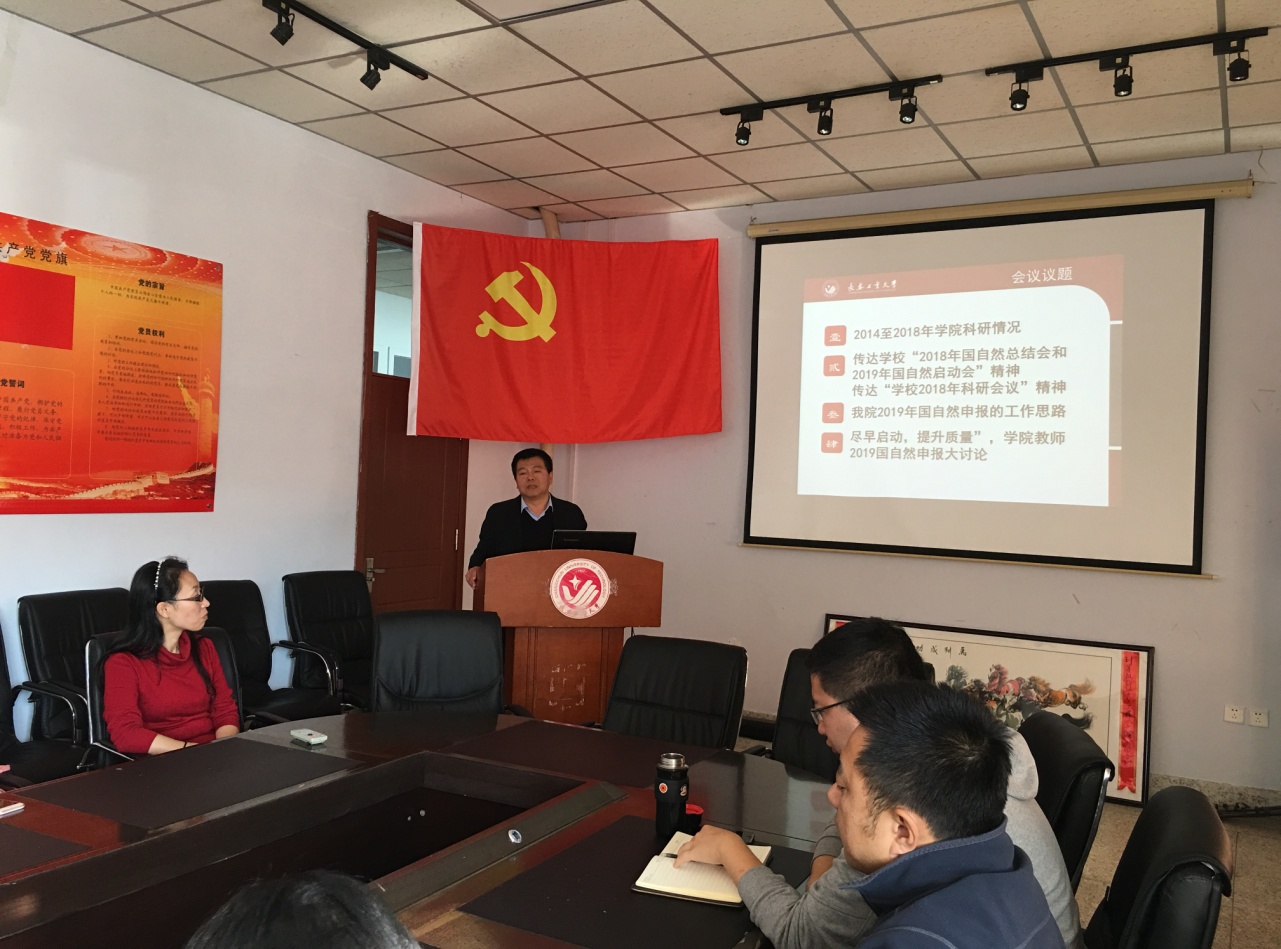 最后,他强调国家自然科学基金项目对学院事业发展、学科建设、教师职业规划所具有的重要性。基金申报教师、青年骨干教师必须高度重视项目撰写、申报工作,学院、学术创新团队、教师本人应高度重视,提升认识,上升高度。与此同时全面分析学院基金工作的现有形势,勉励基金申报教师、青年骨干教师善学习、树信心、找差距、激斗志,勇超越,确保学院事业发展、学科建设与提升、博士点立项建设进程中科研的有效支撑。