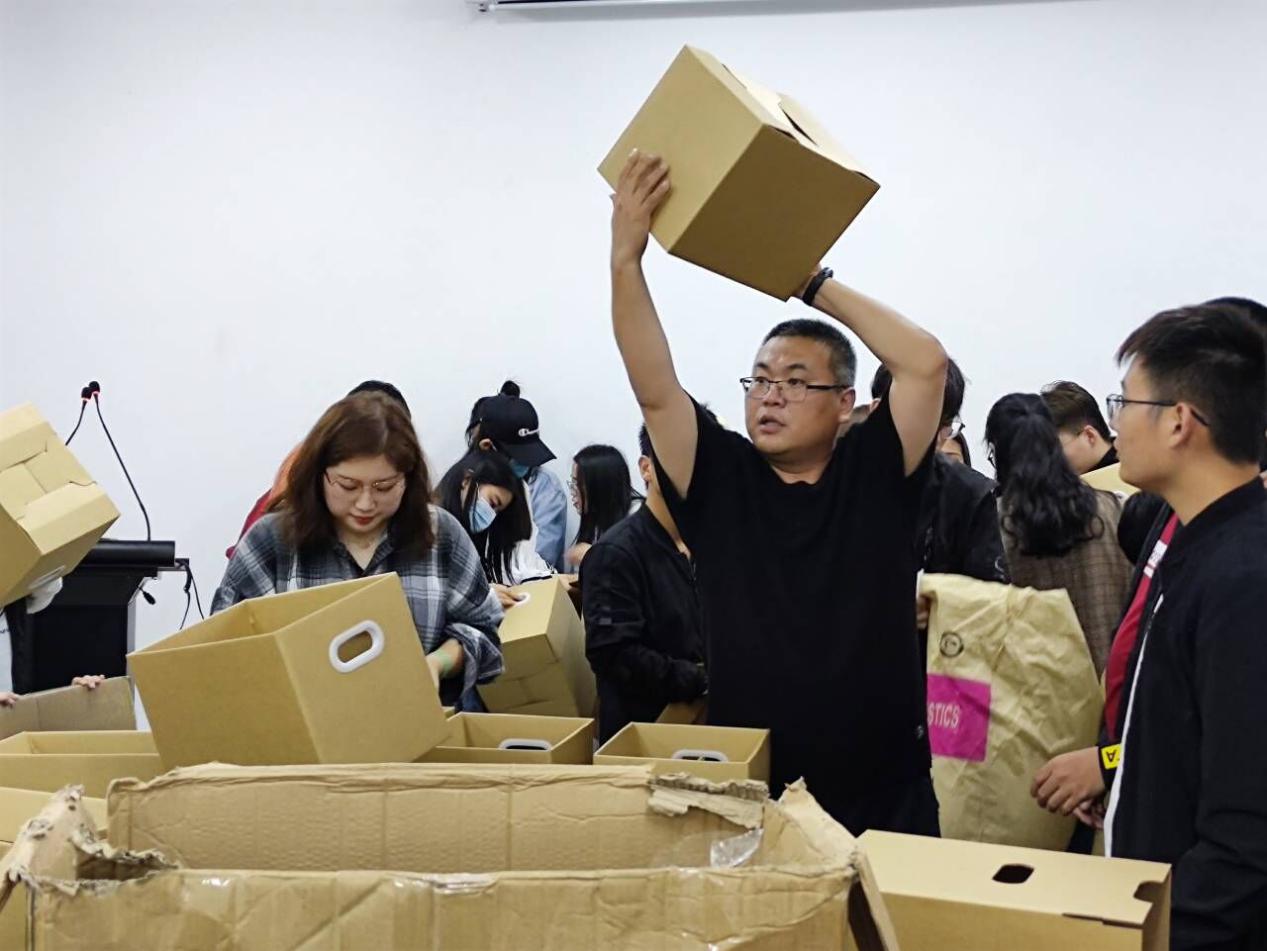 本次志愿活动需折叠500个箱子用以放置教学档案,参加人数95人。志愿者们分工明确、各司其职,活动现场安静有序。王珺楠老师对折叠好的箱子逐一检查。40分钟内,折叠工作便在志愿者们的配合下完成。随后志愿者们进行签到,并在教室清扫后有序离场。