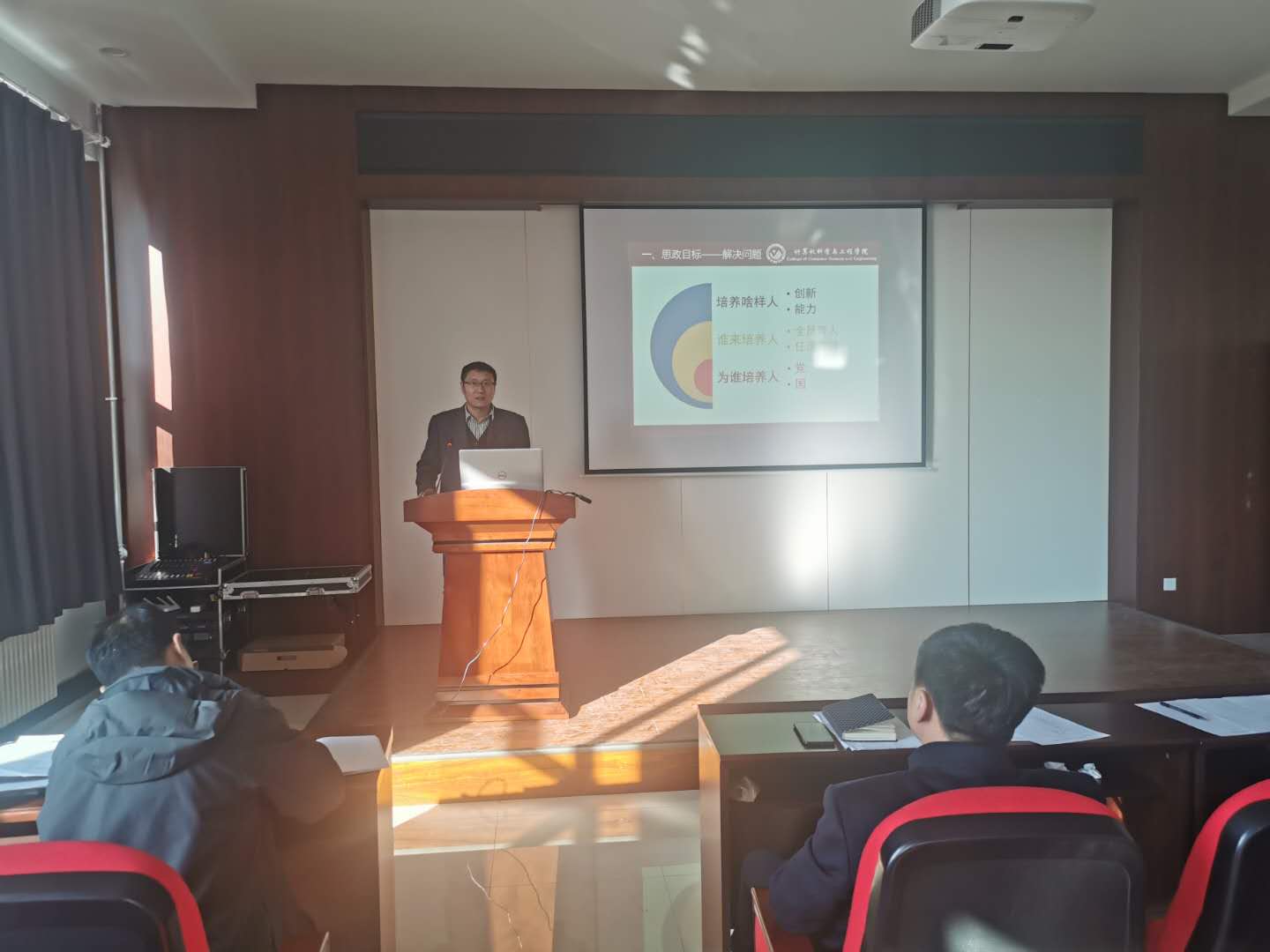 为全面贯彻全国教育大学精神,落实立德树人的根本任务,进一步学习贯彻落实教育部印发的《高等学校课程思政建设指导纲要》,扎实有效的推进学院所有专业、所有课程的课程思政建设工作,学院于11月4日下午在北湖校区计算机楼323报告厅召开了第二次课程思政集中研讨会,学院全体教职工参加了交流研讨。