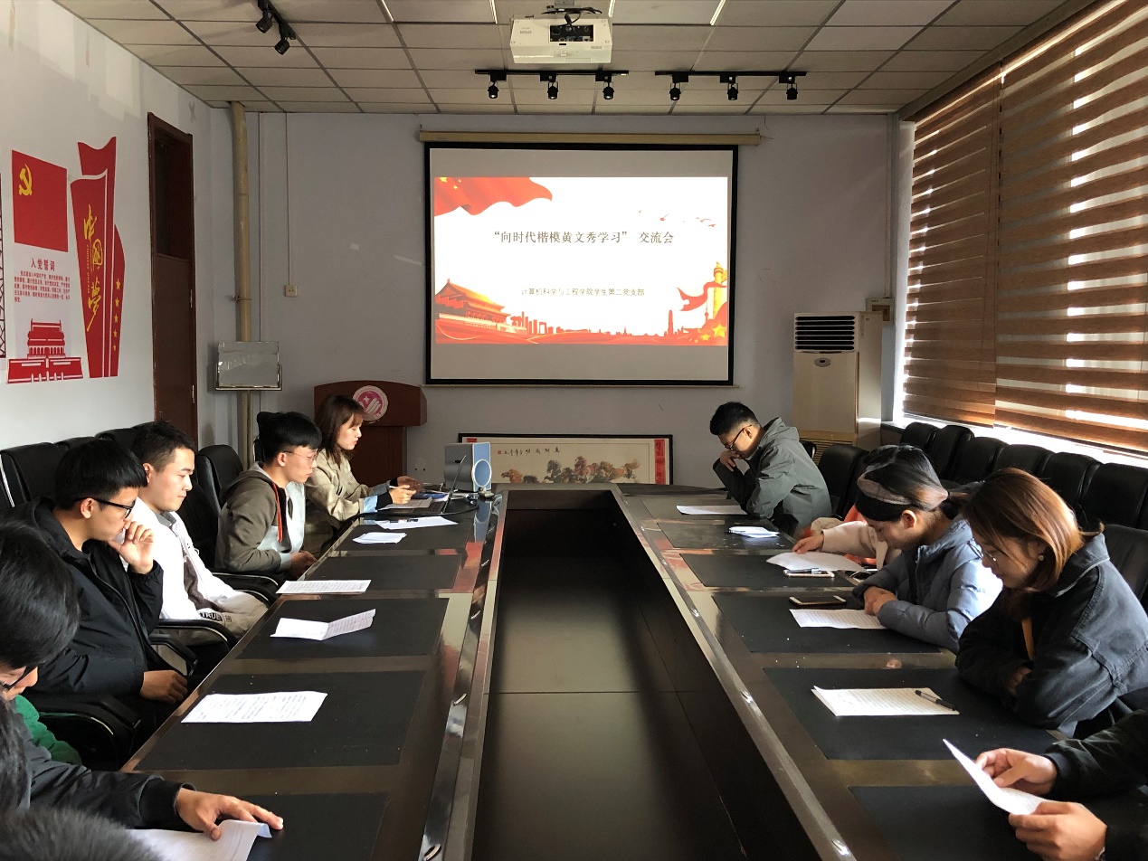 会上,全体党员共同观看了“黄文秀事迹”视频资料,使人感到一种青春的昂扬,一种使命在肩的执着信念,一种矢志不渝的力量,那就是共产党员的本色:不忘初心、牢记使命。黄文秀作为习近平新时代的共产党员,用生命诠释了共产党员的初心与使命,她把生命献给了百坭村,用生命守护了共产党员的初心。随后,学生党员们分享了各自的心得体会,进行了深层次地交流,预备党员刘世昌表示:弘扬奉献精神是新时代奋斗者应执守的人生追求,也是新时代奋斗者的价值追求,作为当代大学生,要以黄文秀同志为榜样。