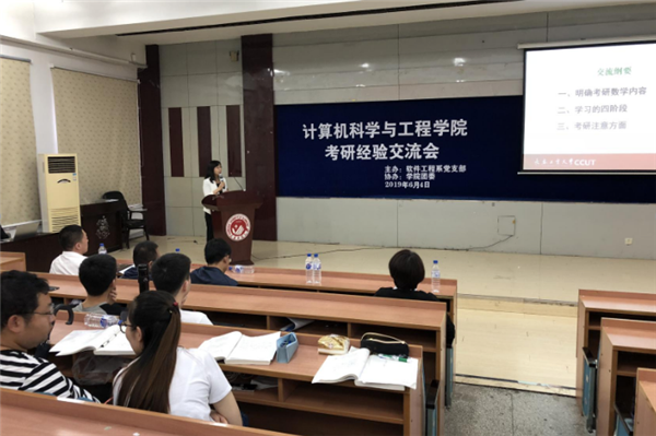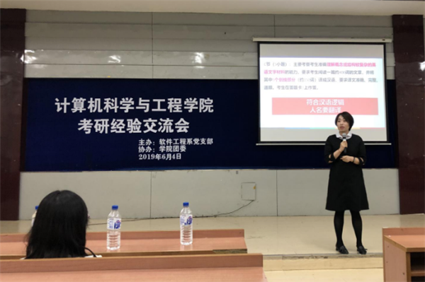 新闻网讯(通讯员 宁静峰)为进一步提高yL23411永利官网登录学生的考研热情,使学生明确考研目标,了解更多考研信息,掌握相关考研技巧,6月4日晚18:00,由软件工程系党支部主办、学院团委协办的考研经验交流会在南湖校区综合三报告厅举行。学院党委书记任红、副院长王红梅、副院长韩旭明、党委副书记季宏伟及软件工程系的党员教师代表参加了本次活动。交流会邀请数学与统计学院贺莉、外国语学院李秀文两位老师主讲,会议由软件工程系党支部书记宁静峰主持。