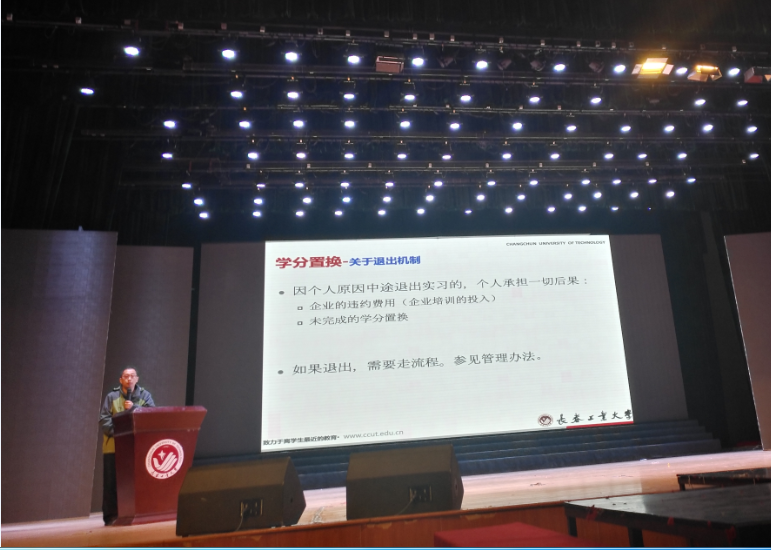 动员会中,首先由副院长郑虹为到场同学们讲解了全国硕士研究生报考、招生的最新政策,介绍了学术型硕士和专业型硕士的区别,同时讲解了我校的招生政策和研究生奖助体系,鼓励和动员有志向考研的同学做好自身定位,选好目标,认真复习备考。随后,副院长刘钢讲述了yL23411永利官网登录学分置换体系与校企“3+1”人才培养模式的具体安排和注意事项,介绍了2019年合作企业的招聘计划安排。他强调与学院合作的企业都是通过学院严格筛选的优质资源,能为同学们提供很好的实习岗位和潜在的就业机会。并提醒有就业意向的同学同样要做好充分的准备。最后,学院校企合作部主任汤淼对“3+1”实习相关事宜做了补充说明,并现场答疑解惑。