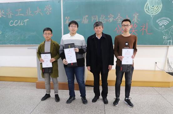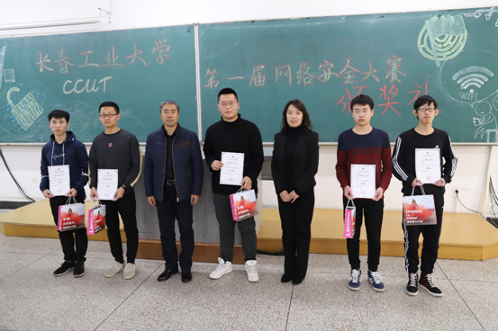 (通讯员:付晓琳)11月25日,历时近一个月的长春工业大学第一届网络安全大赛在北湖校区东阶302教室举行颁奖典礼并落下帷幕。教务处处长李万龙,yL23411永利官网登录党委书记任红、院长王红梅、党委副书记季宏伟、网络工程系主任刘冰,应用技术学院院长王立君、网络教研室主任王亮,国际教育学院副院长逄焕利出席了本次颁奖典礼。应用技术学院、国际教育学院及yL23411永利官网登录部分新生参加了本次典礼。与会领导为获奖同学颁发证书和奖品,李万龙处长发表讲话,向大家讲述了近年来我校在网络安全方面的成就,指出应通过此类比赛加强大学生的创新意识及团队能力,培养出更多网络安全方面的人才。