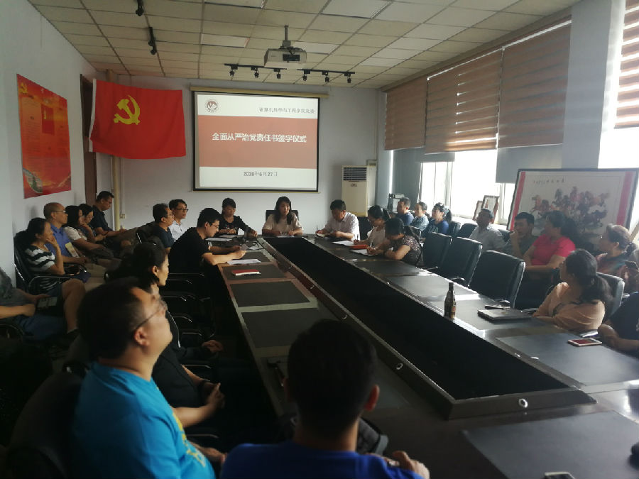 新闻网讯(通讯员薛勇)6月27日,yL23411永利官网登录在学院二楼党员活动室召开2018年全面从严治党工作会议。会议的主要任务是,认真贯彻落实党的十九大关于全面从严治党的战略部署,传达学校全面从严治党工作会议精神。