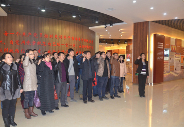 现场参观环节共分为光辉历程、吉林特色反腐倡廉、勤廉先锋、警钟长鸣四个展示部分,同时充分运用了展板、灯箱、实物、情景再现、视频播放、环幕电影等方式,给参观学习的党员干部带来了全方位、多角度、最直接的视觉冲击和心理互动,全面发挥了教育、警示作用。通过多种表现手段和形式,在解说员的带领下,全面回顾了中国共产党近年来的各项反腐倡廉成就,以及吉林省反腐倡廉工作的成果。讴歌了勤廉典型的先进事迹,深刻剖析了腐败案件发生的特点和规律,弘扬正气、鞭挞腐恶。最后,大家一同观看了贪腐分子忏悔的纪录片,透过一个个反面典型案例,使大家思想上深受触动和教育,感受到了腐败行为给党和国家造成的巨大损失,以及法律的威严和违纪违法的惨痛教训。在本次参观学习中,学院党委书记任红还带领大家面对党旗庄严宣誓,重温了入党誓词。
