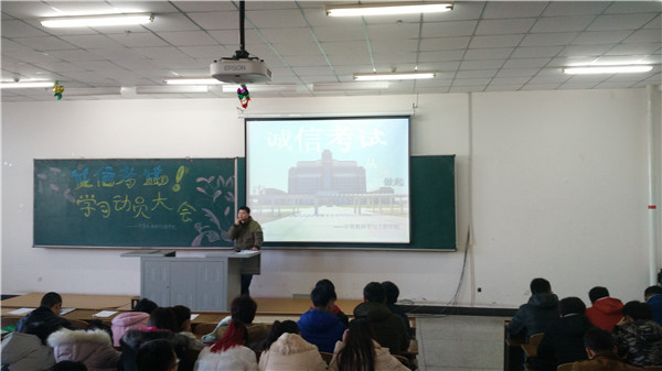 yL23411永利官网登录讯(通讯员 胡兴元)为贯彻落实学生处及学院要求,进一步加强学风建设,严肃考风考纪,1月6日,yL23411永利官网登录于北湖校区召开了诚信考试学习动员大会,此次大会由辅导员陈磊老师主讲,2015级全体同学参加了会议。