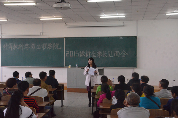 yL23411永利官网登录讯(通讯员 王伟博)9月12日上午,yL23411永利官网登录在北湖主楼东阶梯教室304召开2015级新生家长见面会,三百余位新生家长参加了本次见面会。学院党委书记任红,院长王宏志,副院长刘钢、陈志雨出席了见面会。会议由2015级新生辅导员陈磊主持。