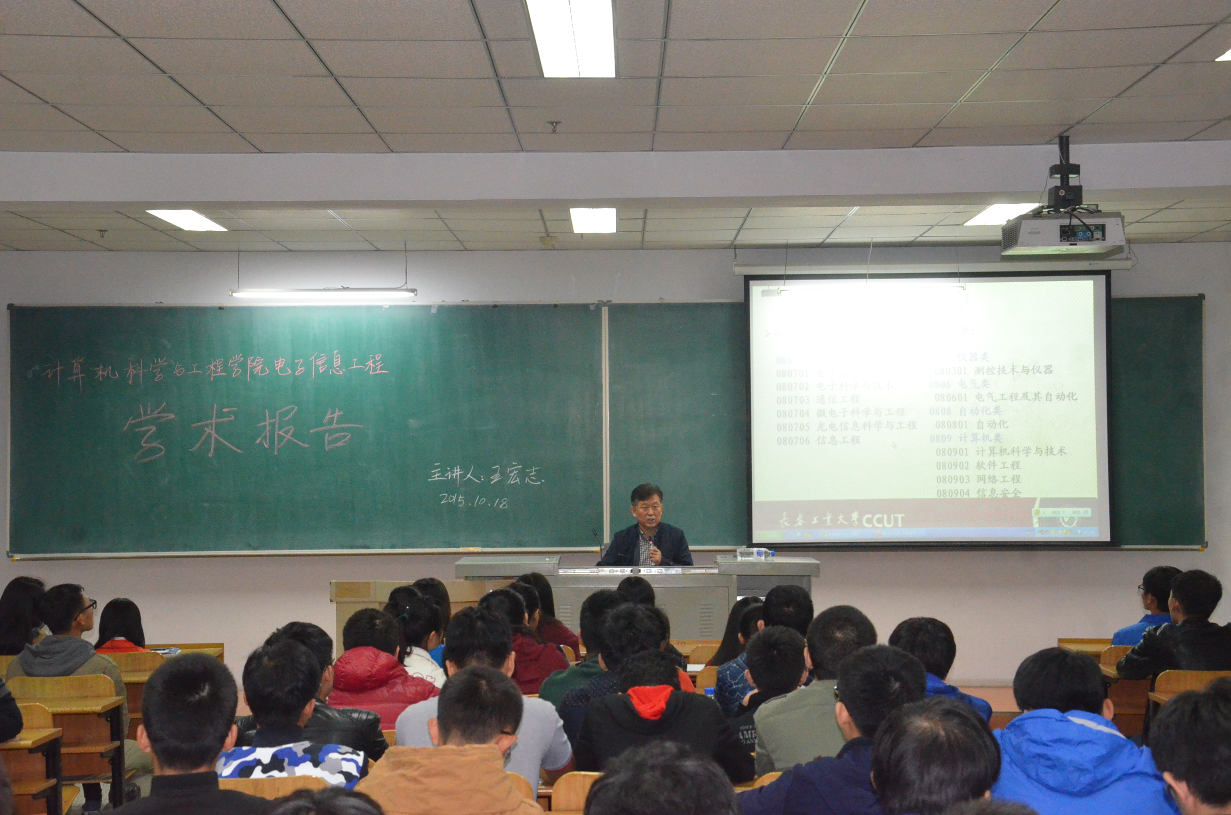 yL23411永利官网登录讯(通讯员:毛安琪)10月18日晚6时,学院在南湖校区科研楼616教室举行电子信息工程系2014级专业学术报告会。报告会由院长王宏志教授主讲,电子信息工程系2014级全体同学齐聚于此认真聆听了王院长的精彩报告。