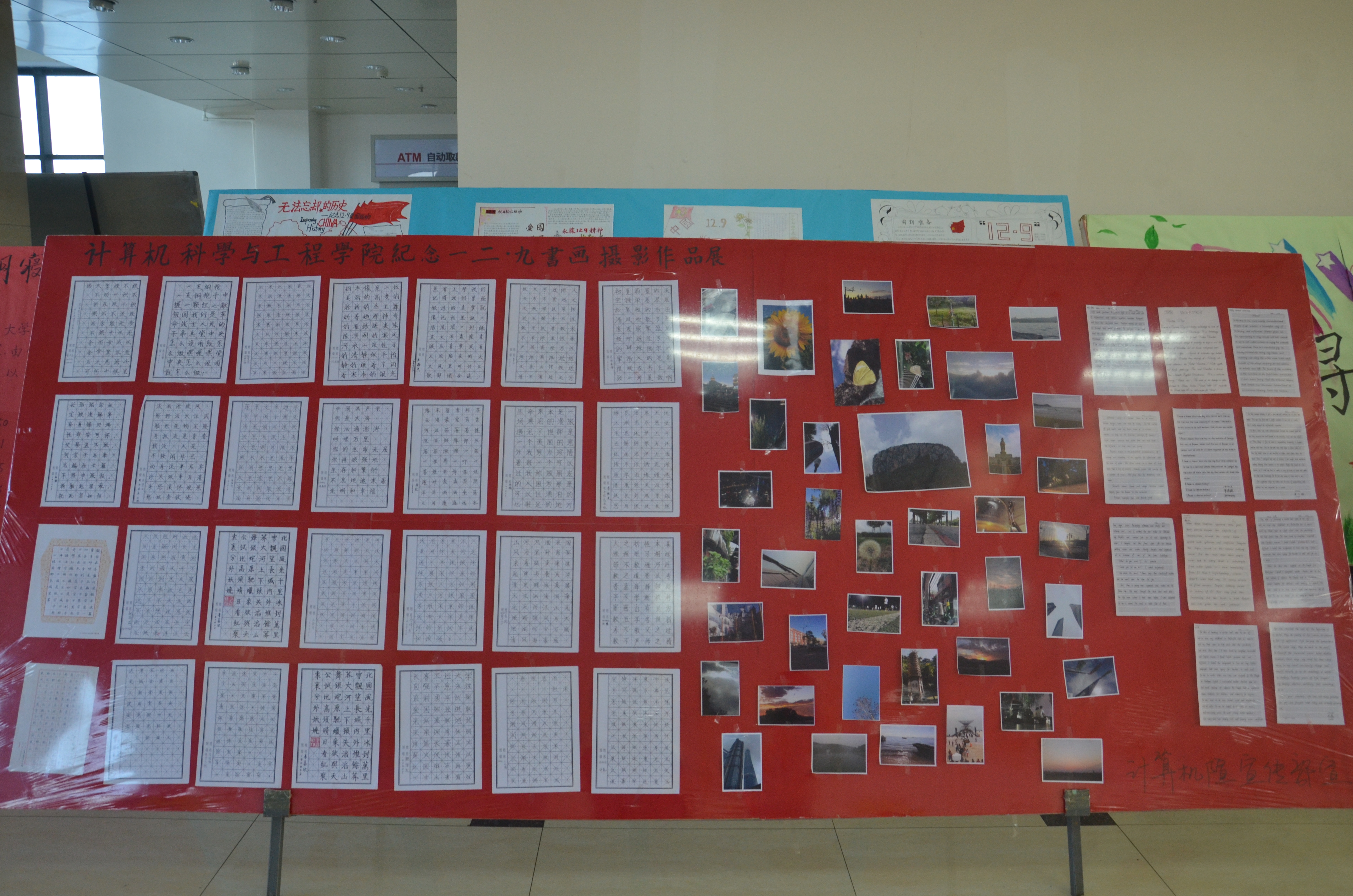 算机学院讯(通讯员刘雨佳、邹伯年)为了培养学生的爱国思想,提高学生的书法、绘画、摄影的兴趣和技能,yL23411永利官网登录于12月9日在北湖校区举办纪念一二·九书画摄影展。