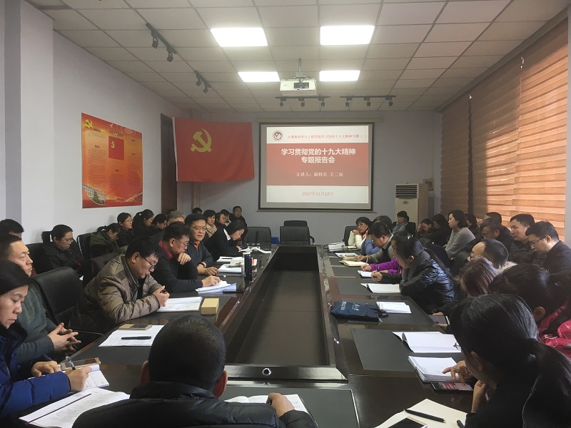 通过王校长报告让我们对党的十九大精神有了进一步的理解和认识,激励了每一位教师继续在自己的岗位上不懈奋斗,更加坚定了教师们学为人师、行为世范的坚定信念。通过学习贯彻党的十九大精神专题活动,全体教师们决心坚持学用结合,切实把党的十九大精神不折不扣地落实到实际行动上,推动学院工作再上新台阶!