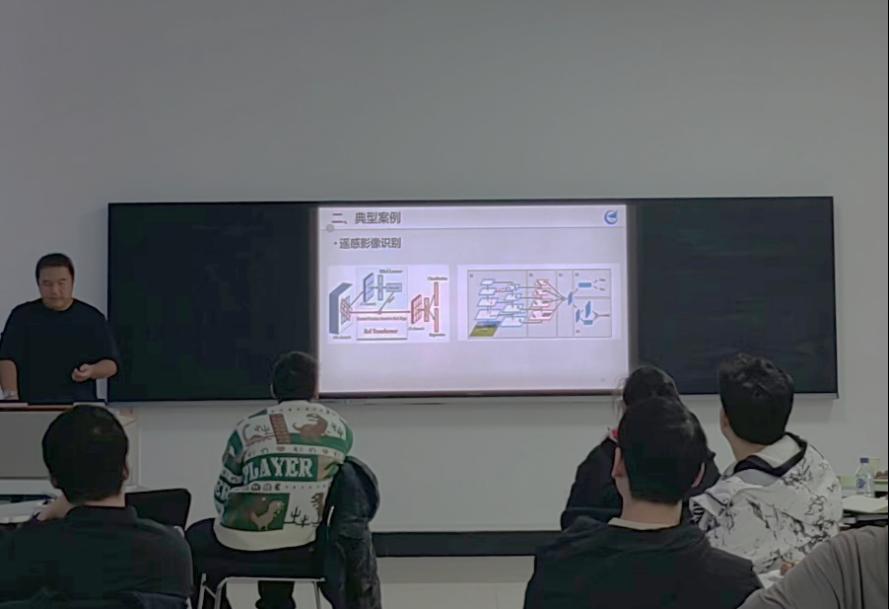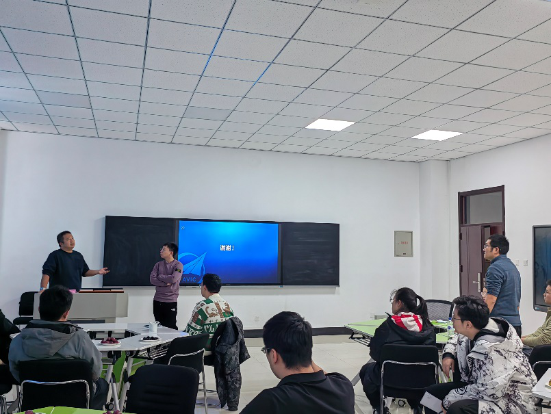 活动中,老师与同学们积极参与互动,与王经纬工程师、牛博通主任展开了深入交流,共同探讨了深度学习在航空科技的应用等相关问题。会后,两位嘉宾与各位参会教师和同学合影留念。
